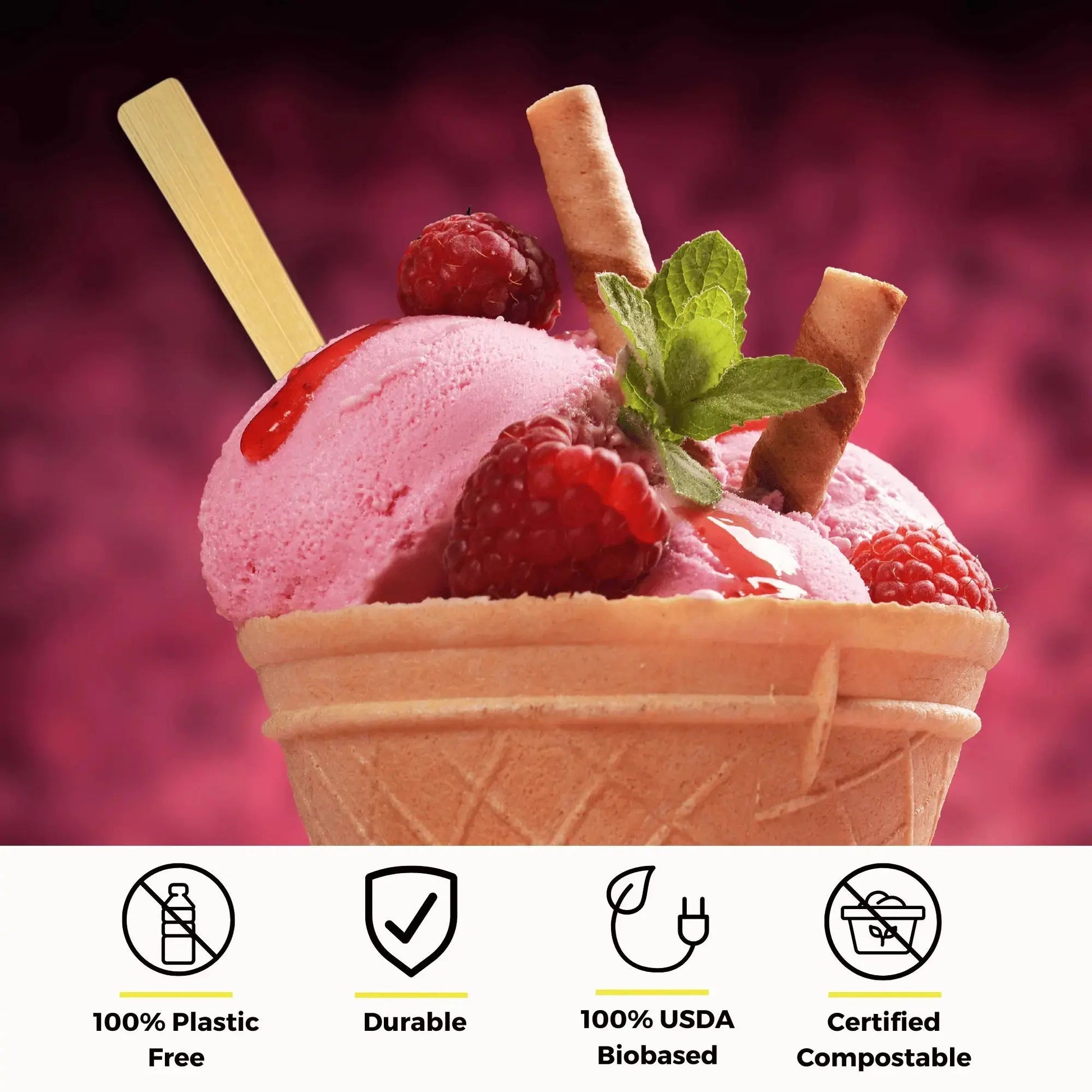 Introducing our eco-friendly 4.3” disposable bamboo taster spoons! Crafted with care from high-grade bamboo, these spoons boast exceptional durability, water resistance, and natural antibacterial properties.