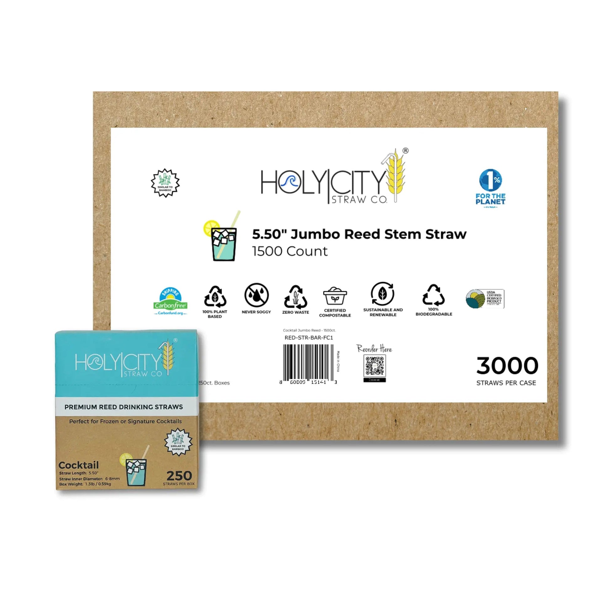 Our cocktail jumbo reed straws are perfect for frozen or signature cocktails, smoothies, or any hot and cold beverage. Reed is known as the cousin to bamboo with similar strength and durability. There are simply hand-cut from the stem of a sustainable and renewable reed plant.