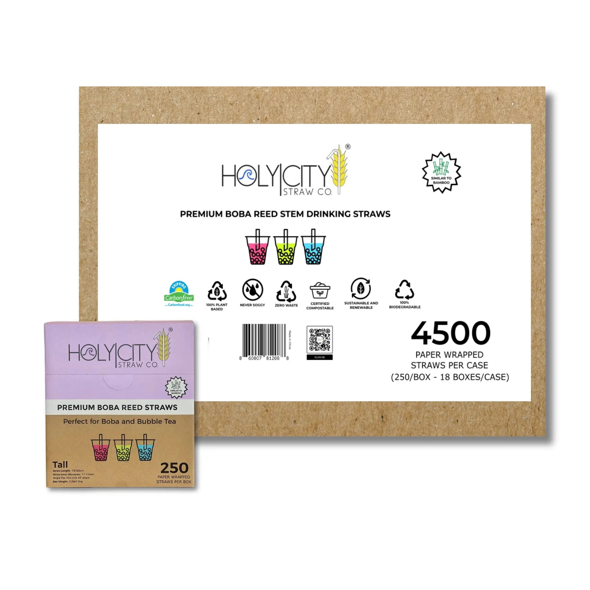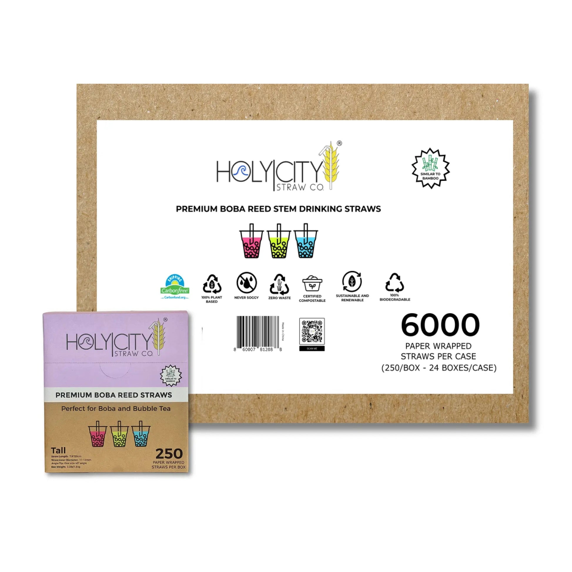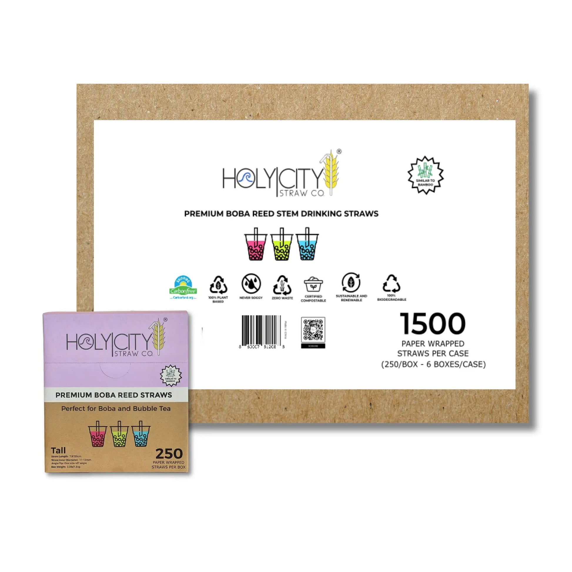 Our 100% plant-based Boba straws are wide enough (outer diameter of 11mm+) to suck up large tapioca pearls in any boba or bubble tea beverage or can be used for thicker milkshakes, floats or smoothies. Additionally, one side of the straw is cut at a 45' angle to ensure the highest level of drinking performance. They are also individually paper wrapped to ensure an extra level of hygiene protection. Similarly to our other reed straws, our Boba straws are made from just the stem of the reed plant and will never get soggy. Best of all, after drinking that final tapioca, they can be tossed in a compost bin or disposed of naturally… Besides, they will 100% biodegrade on land or sea….. Just like a leaf!