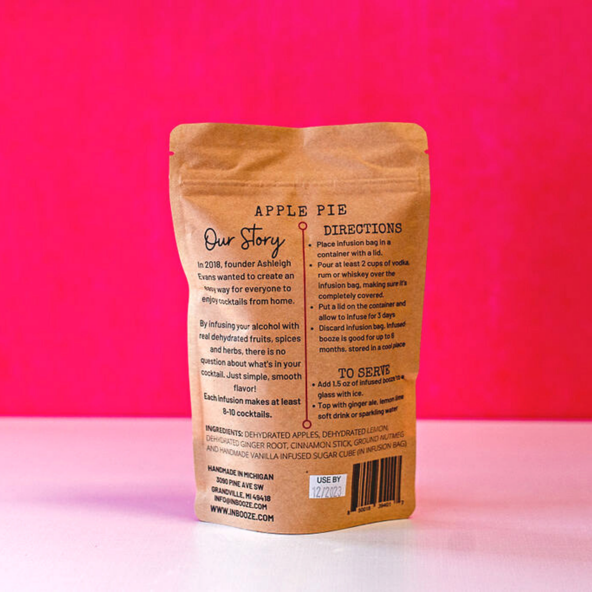 Looking to enjoy some fab drinks from home? InBooze makes it easy! Each handmade InBooze® packet contains one large infusion pouch filled with dehydrated fruits, veggies, spices and herbs to infuse your alcohol. The kit infuses enough for 8-10 cocktails...there is a flavor for everyone!