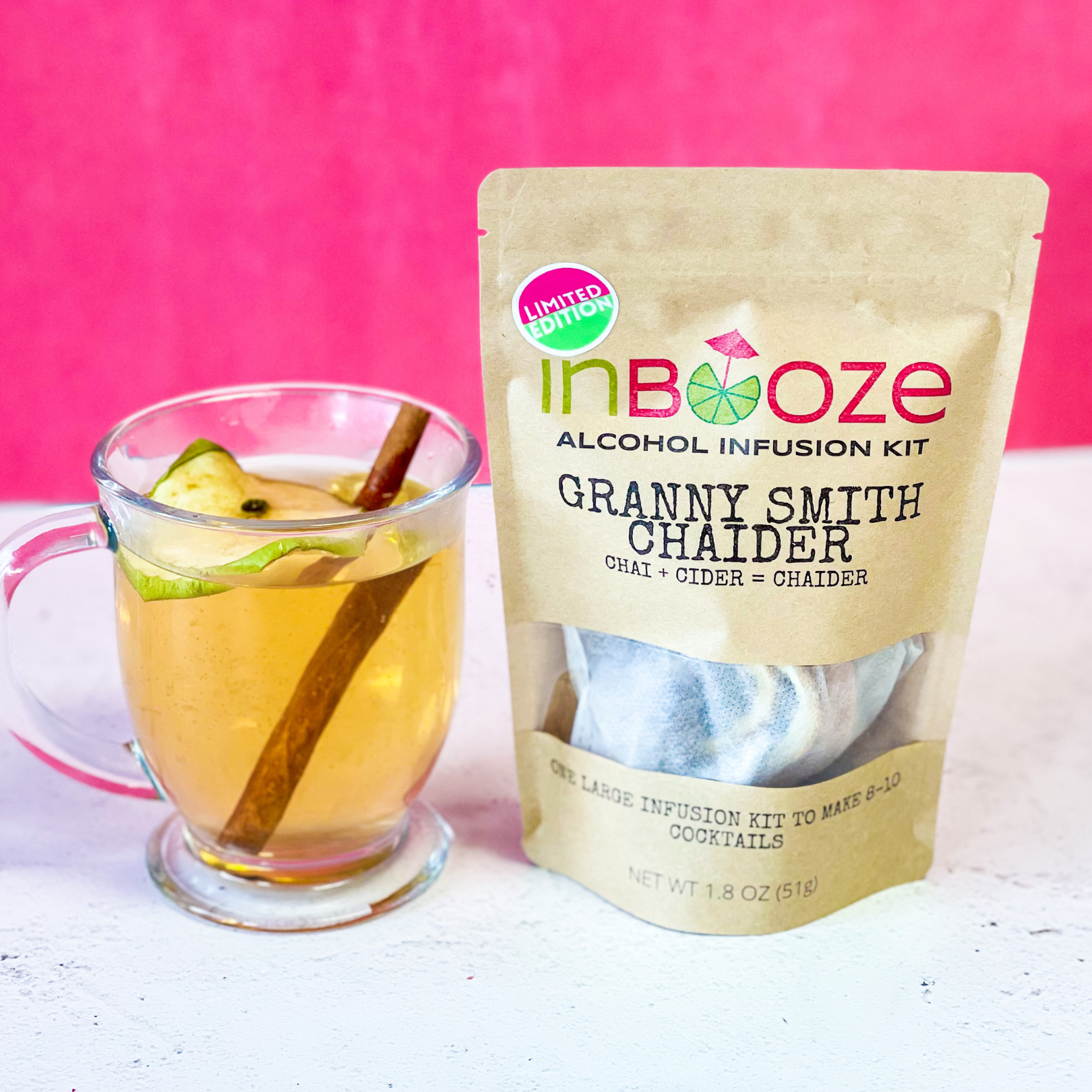 This infusion kit pairs well with: whiskey, rum, vodka or cider (as a mocktail)
