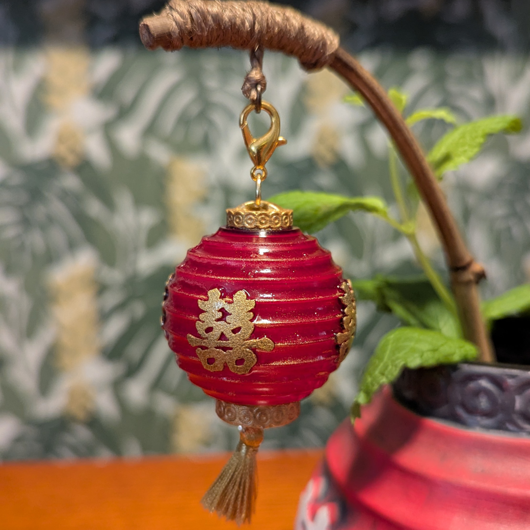 These joyous tiki swizzles feature a dangling Chinese lantern with a light-up feature dry brushed in gold paint and adorned with the symbol for joy/happiness. They light up too! Currently, these are only offered in red with lucky red lights.
