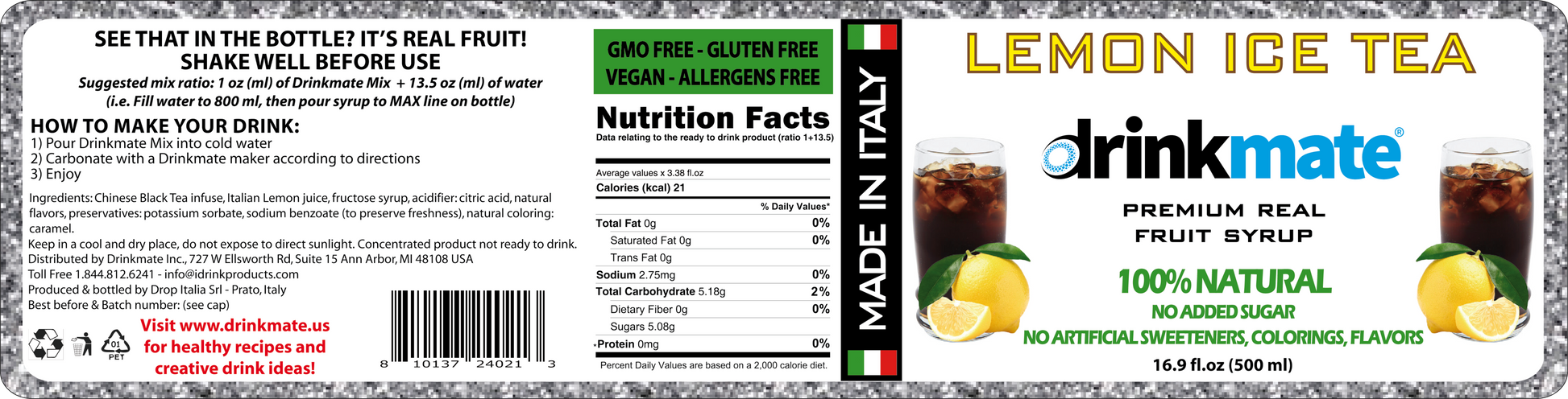 The Drinkmate Lemon Tea Premium Italian Syrup is manufactured in Italy with the following qualities: