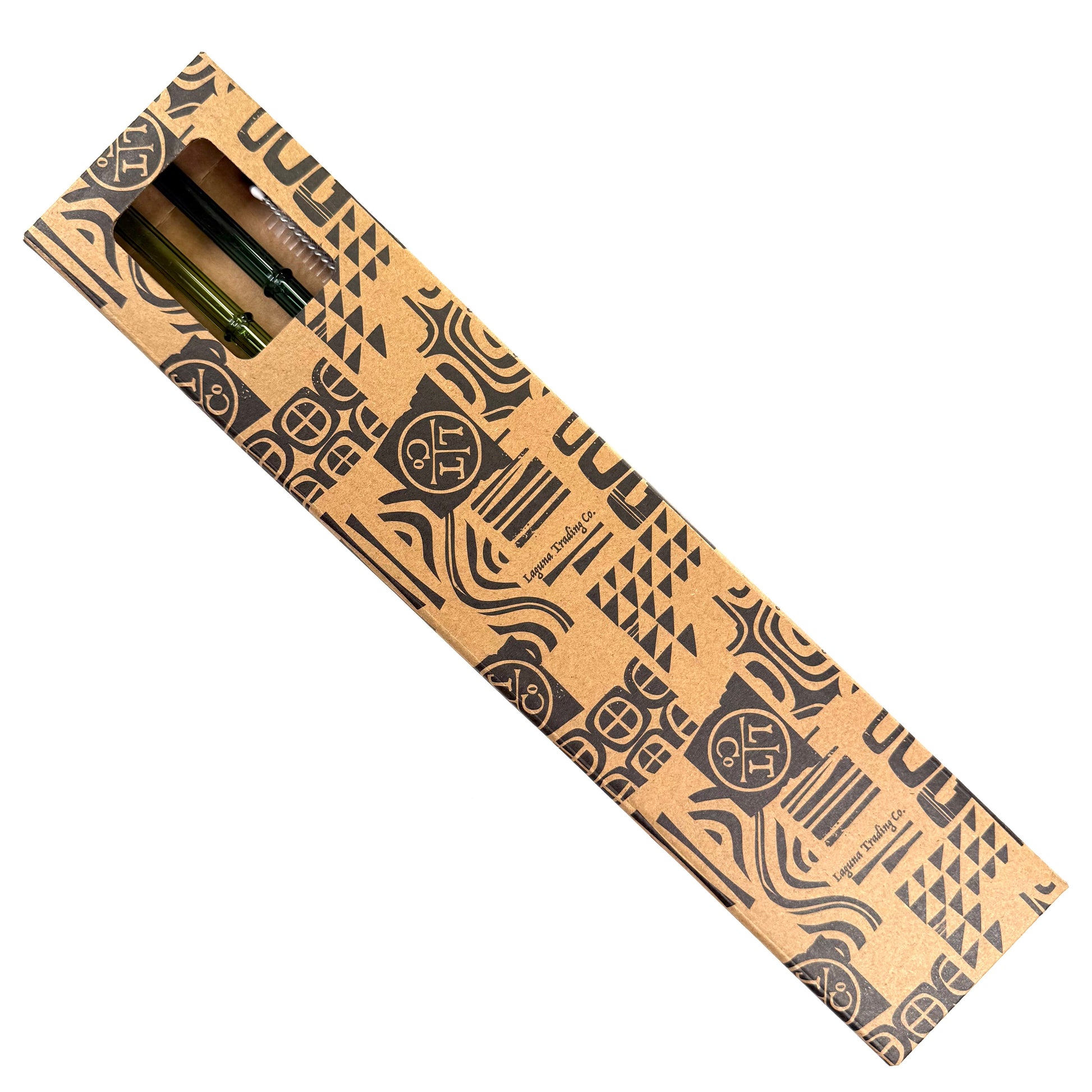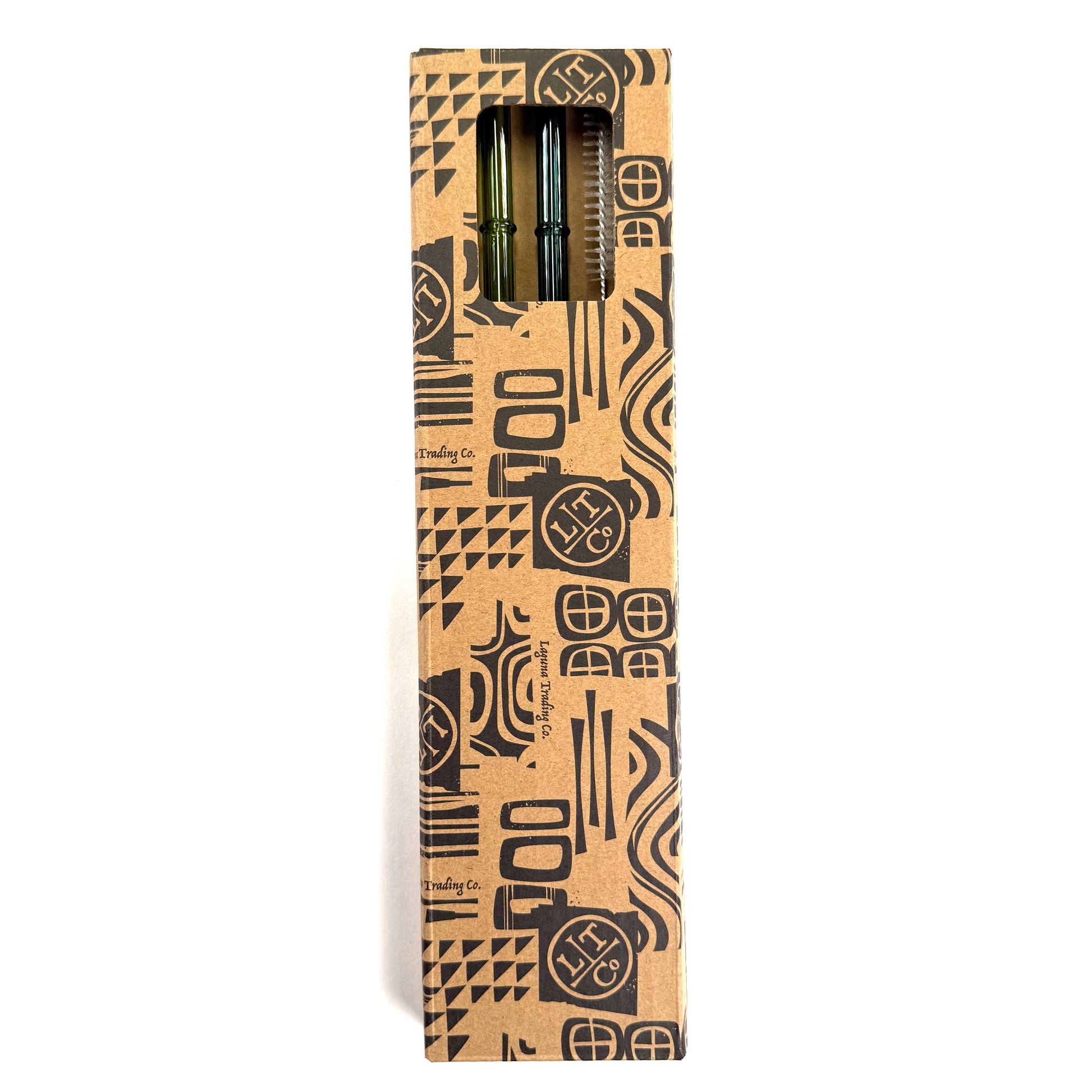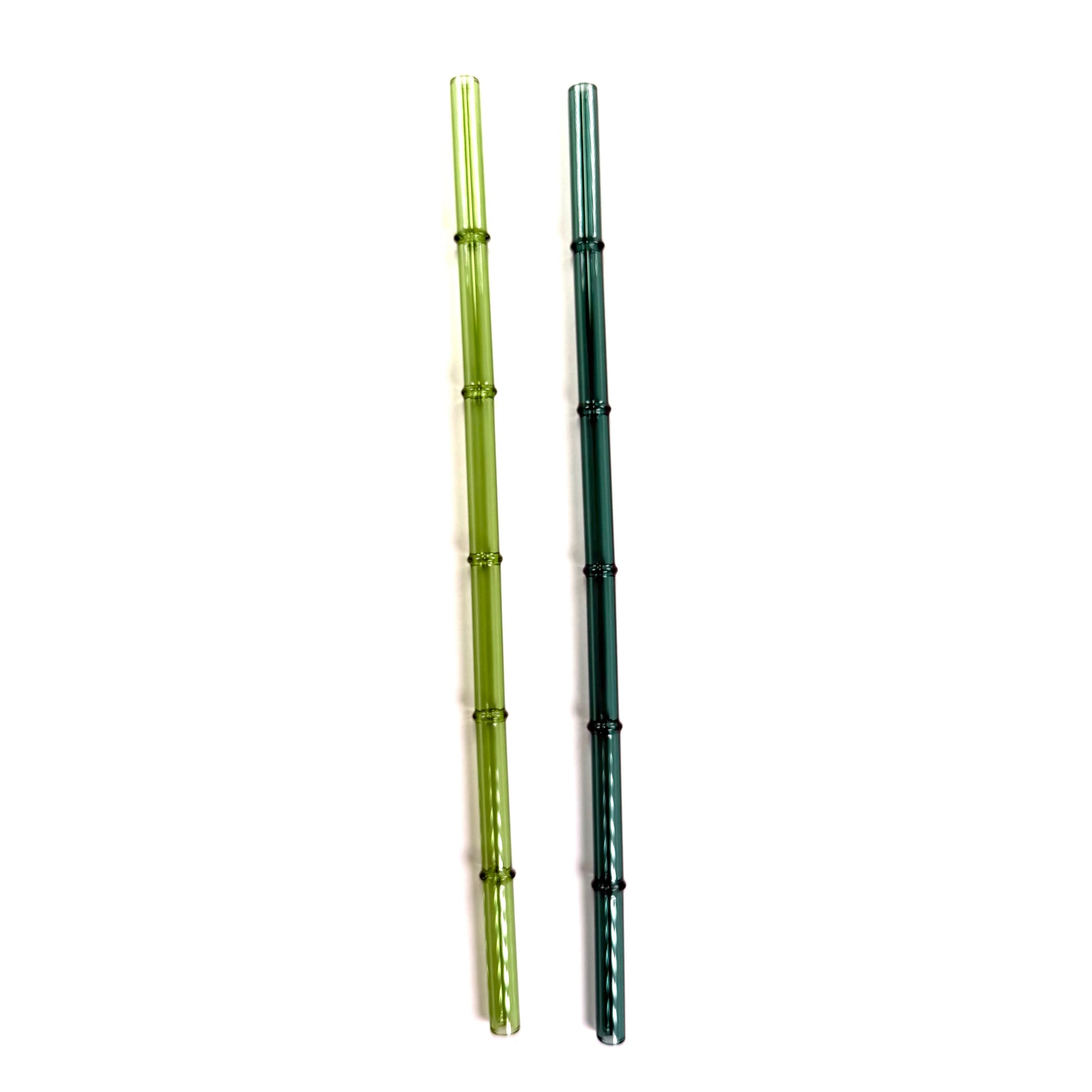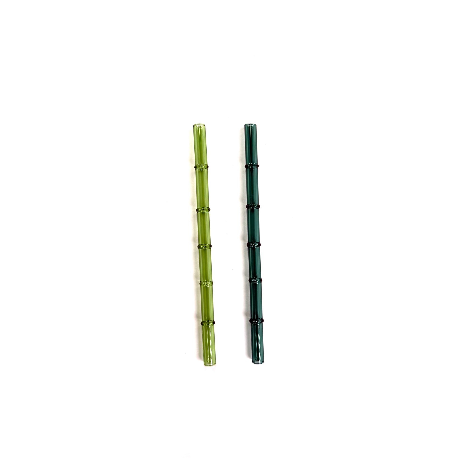 'Monstera' Glass Bamboo Straw Set of Two (2) - Ready to Ship!