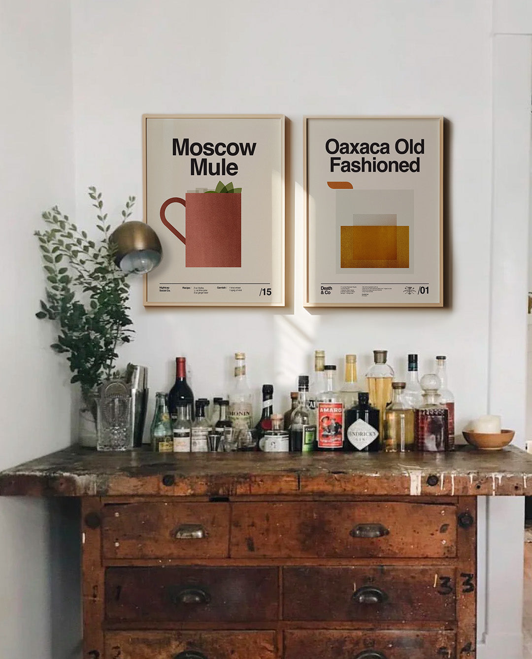 This midcentury modern art piece adds a new level of class to your bar or living room area, while also serving as an invitation and recipe reference to enjoy your favorite cocktails