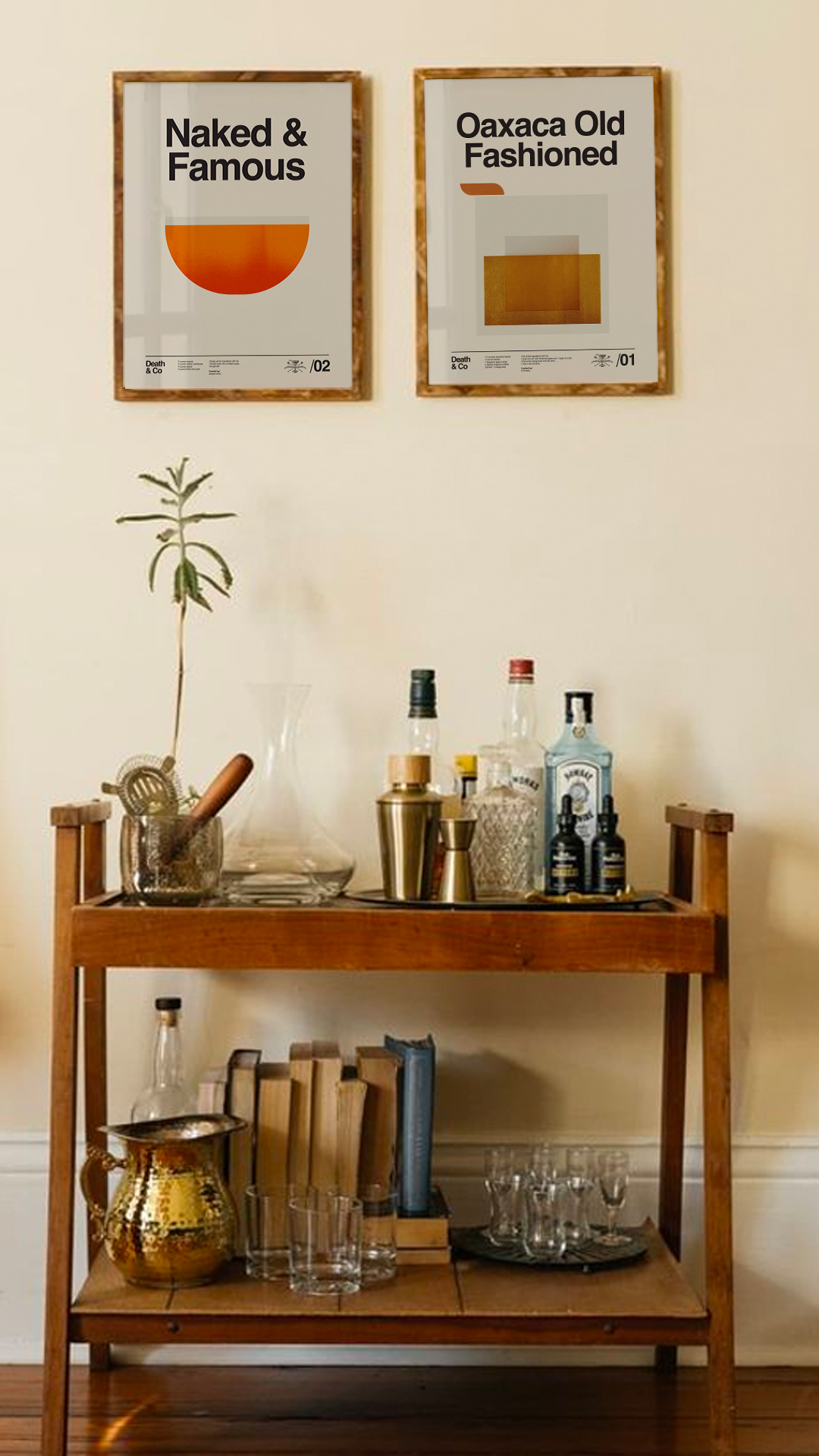 This midcentury modern art piece adds a new level of class to your bar or living room area, while also serving as an invitation and recipe reference to enjoy your favorite cocktails