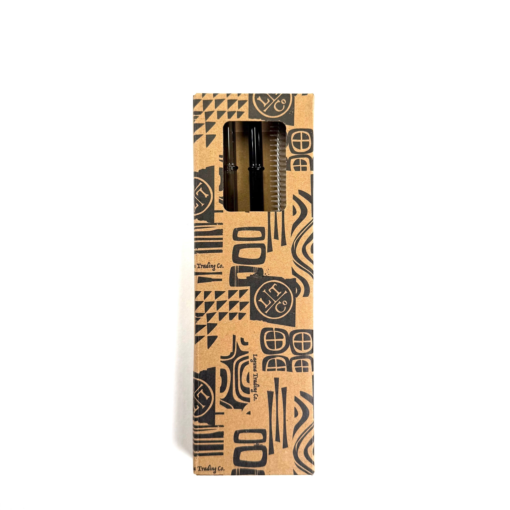 'Obsidian' Glass Bamboo Straw Set of Two (2) - Ready to Ship!
