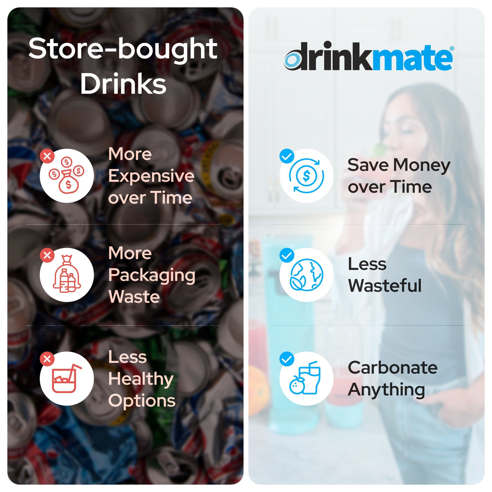 The Drinkmate OmniFizz is the ultimate all-in-one carbonation system designed to elevate your beverage experience. This versatile soda maker allows you to carbonate any drink, from juice and tea to cocktails and win, giving you full control over the fizz. With an easy-to-use design powered entirely by CO2 (no batteries or electricity required!), a small footprint, and available in a variety of colors, the Drinkmate OmniFizz will fit in perfectly in any home kitchen. Sparkle up your favorite drinks with Drinkmate and enjoy endless carbonation possibilities!