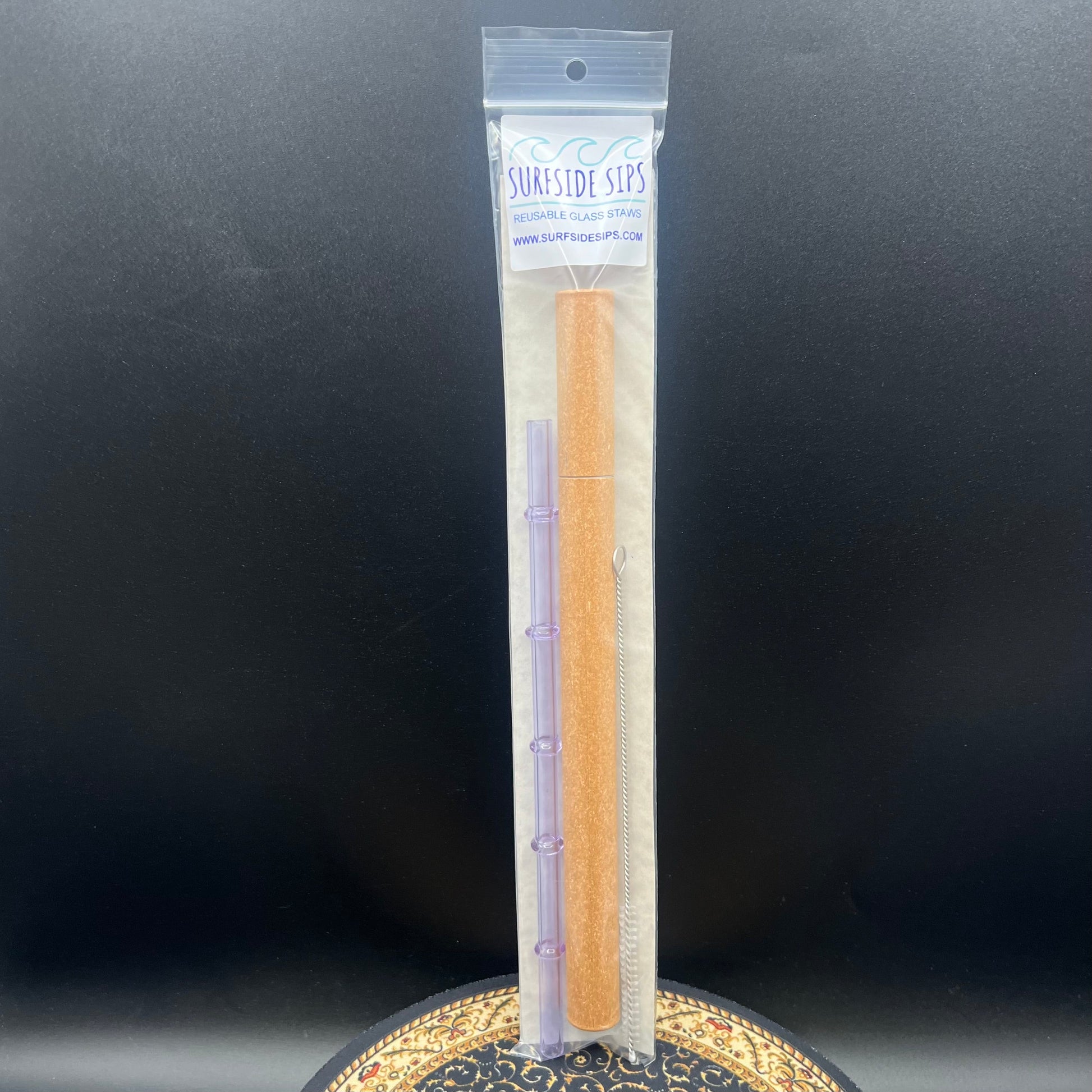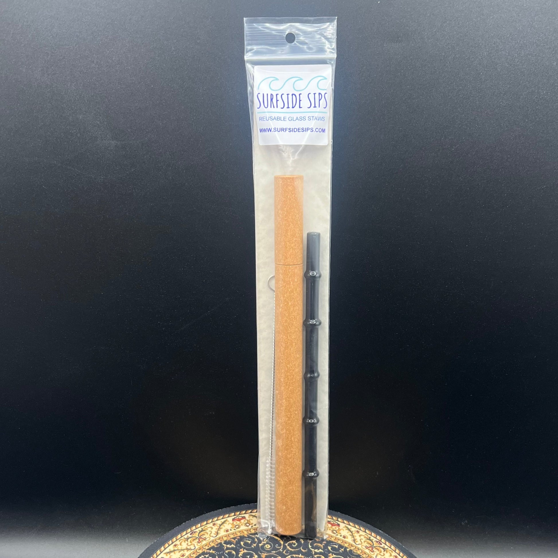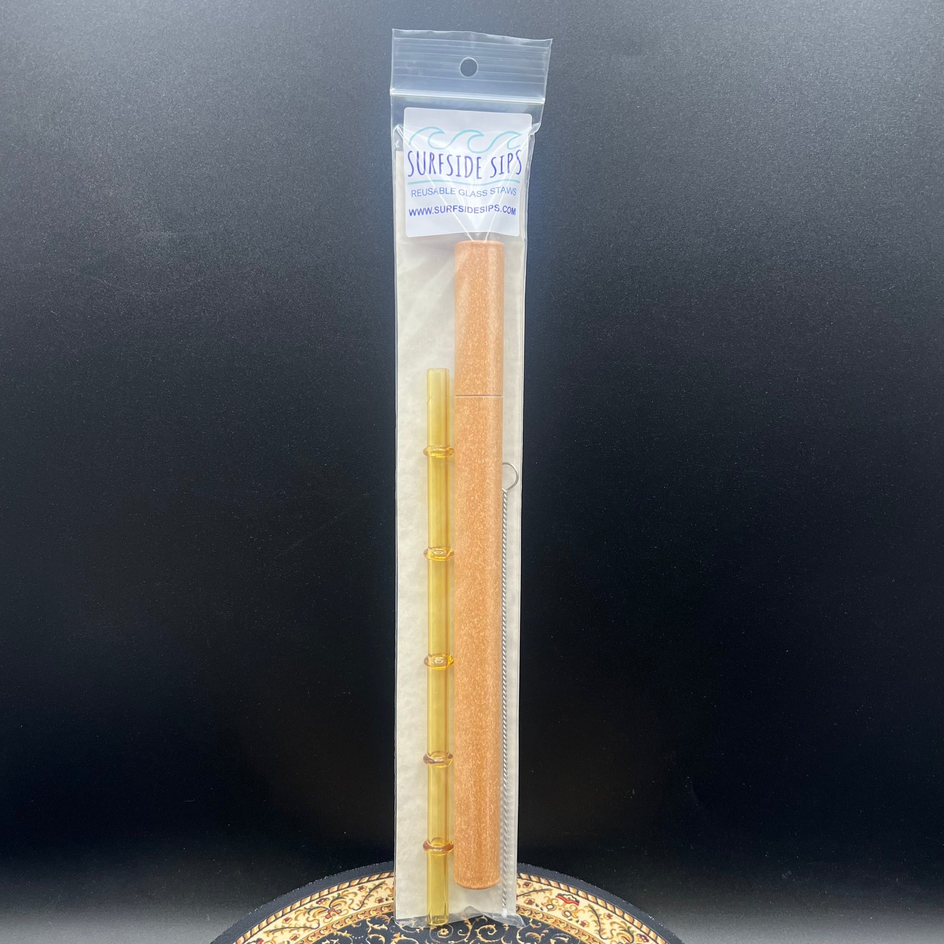 Surfside Sips "Tiki Bamboo" 8" Reusable glass straw travel kit