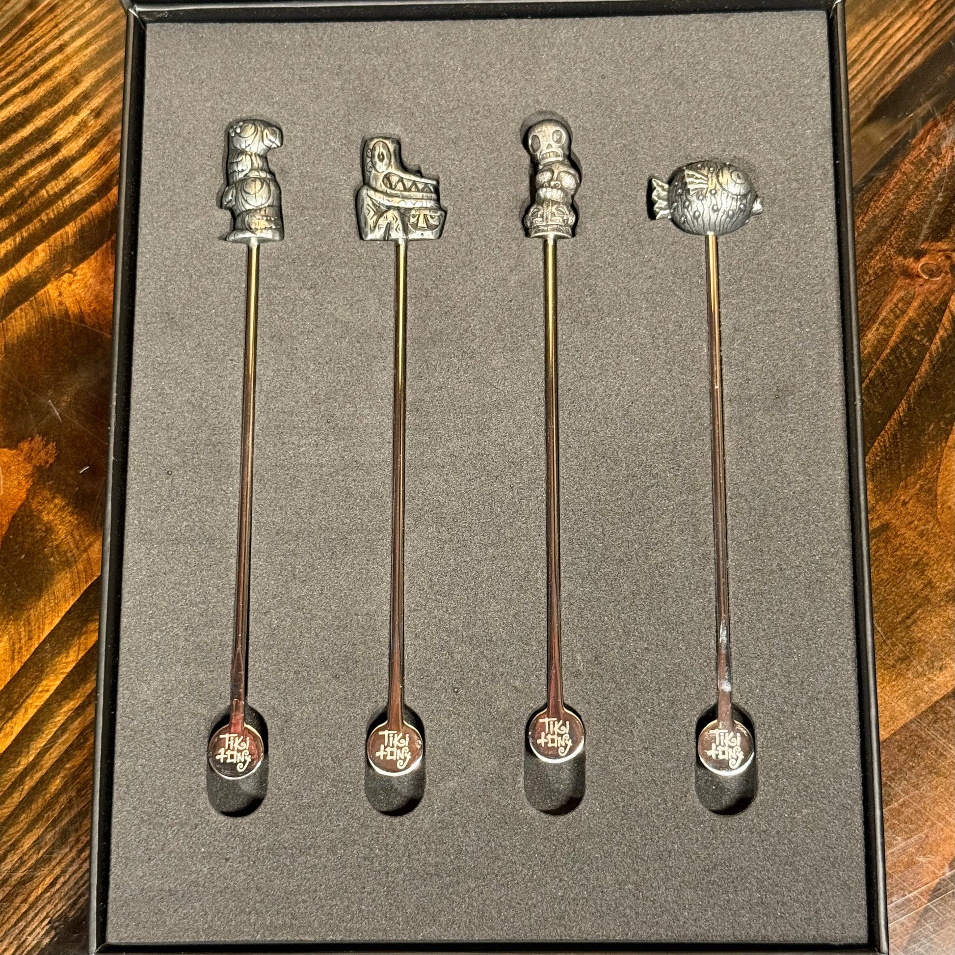 Tiki tOny's 'Best of Tiki' Sculpted Metal Swizzle Sticks - Set of Four (4) - Ready to Ship / Rolling Pre-Order (FREE SHIPPING in U.S.)